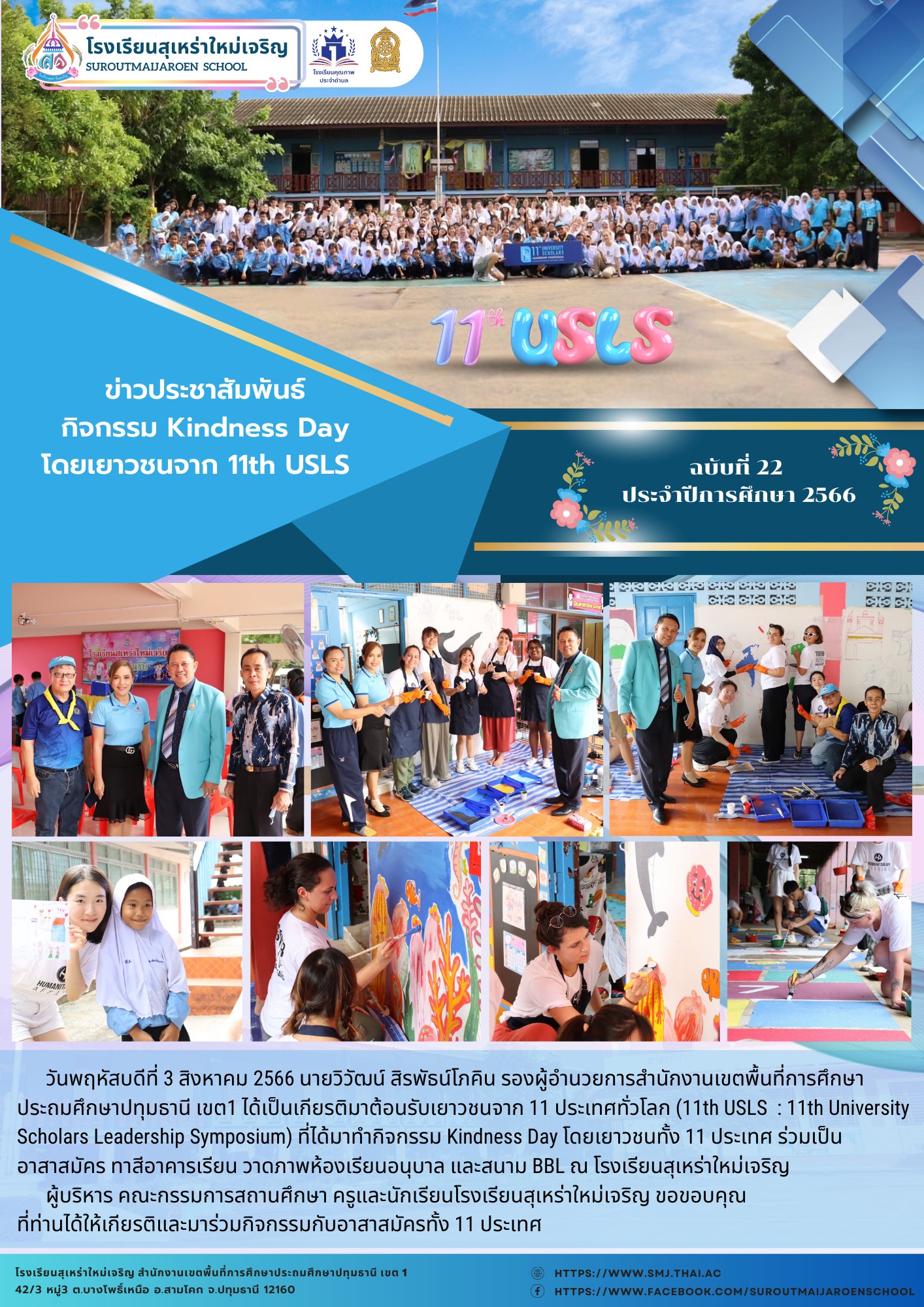 วันพฤหัสบดีที่ 3 สิงหาคม 2566 นายวิวัฒน์ สิรพัธน์โภคิน รองผู้อำนวยการสำนักงานเขตพื้นที่การศึกษาประถมศึกษาปทุมธานี เขต1 ได้เป็นเกียรติมาต้อนรับเยาวชนจาก 11 ประเทศทั่วโลก (11th USLS : 11th University Scholars Leadership Symposium) ที่ได้มาทำกิจกรรม Kindness Day โดยเยาวชนทั้ง 11 ประเทศ ร่วมเป็นอาสาสมัคร ทาสีอาคารเรียน วาดภาพห้องเรียนอนุบาล และสนาม BBL ณ โรงเรียนสุเหร่าใหม่เจริญ
