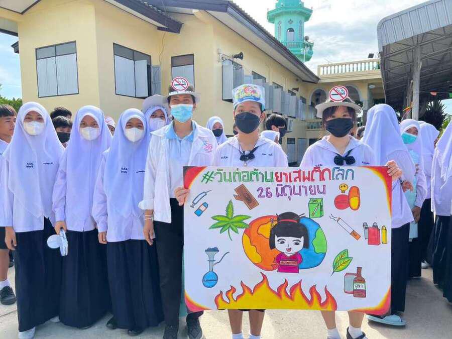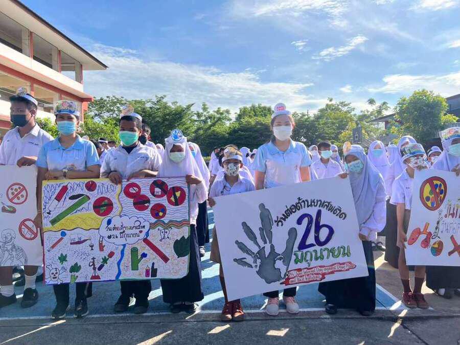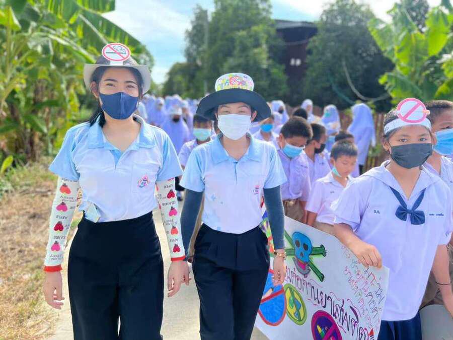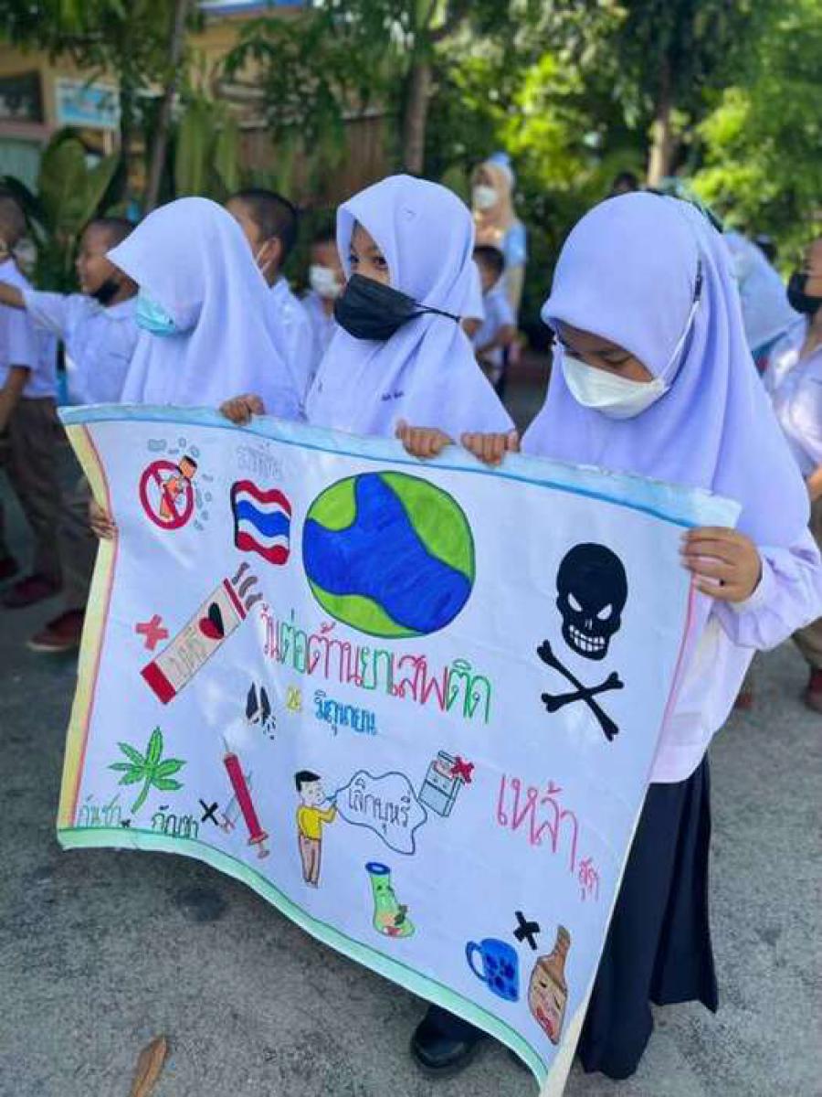 นักเรียนร่วมเดินรณรงค์บริเวณชุมชนรอบๆโรงเรียน เพื่อรณรงต่อต้านยาเสพติด S:0