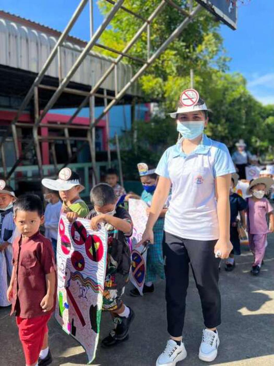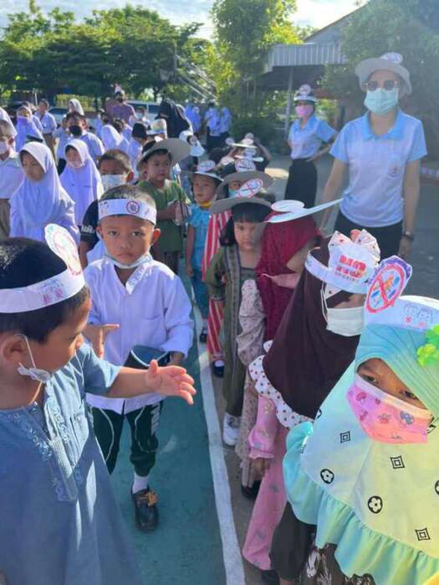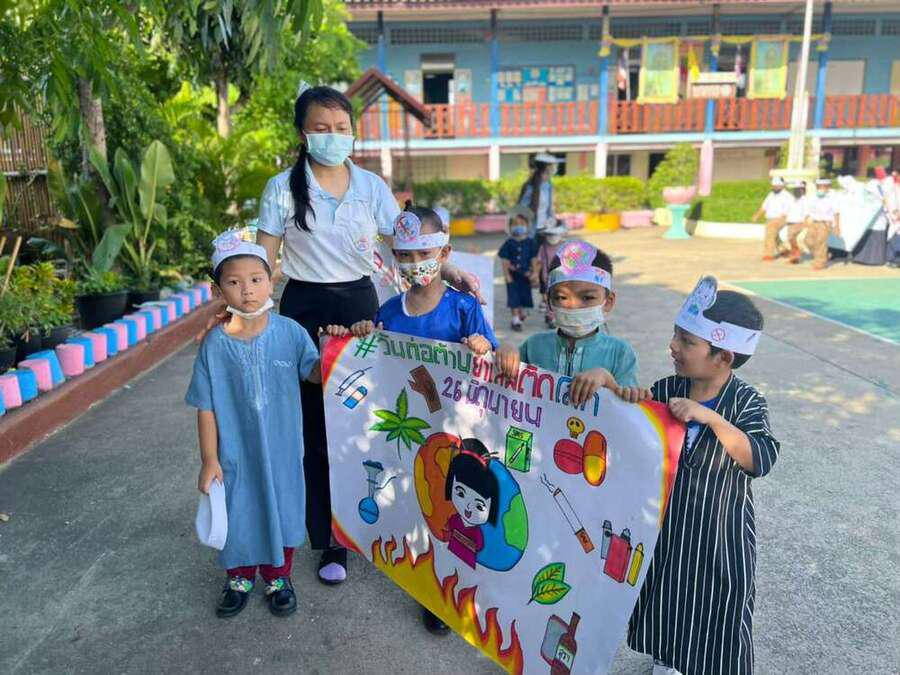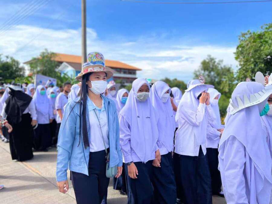นักเรียนร่วมเดินรณรงค์บริเวณชุมชนรอบๆโรงเรียน เพื่อรณรงต่อต้านยาเสพติด S:0